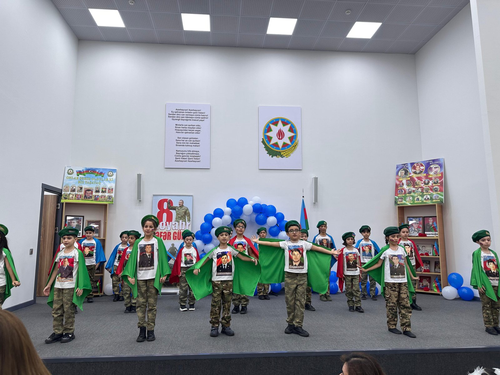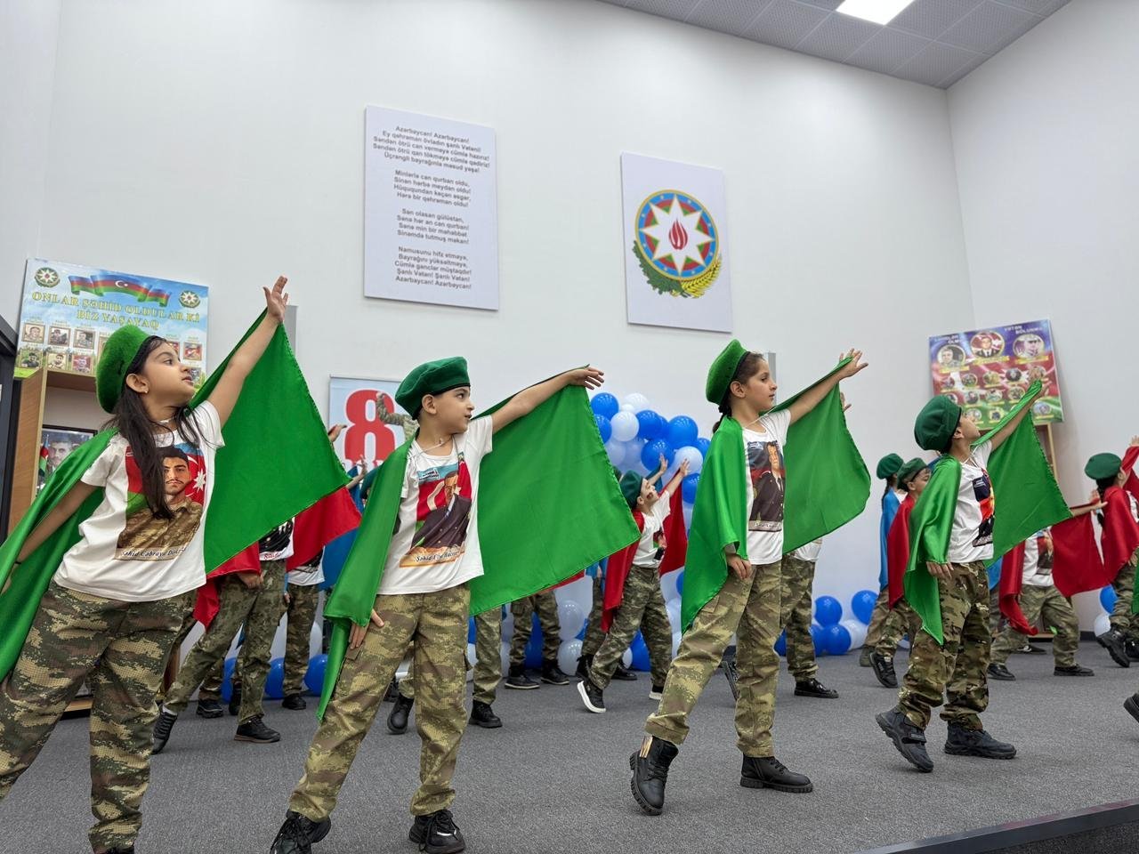 Daha sonra məktəbdə təhsil alan şəhid övladlarının ifasında “Mənim atam qəhrəmandır” mahnısı səsləndirilib. İfa tədbir iştirakçılarını duyğulandırıb, şəhidlərə olan sonsuz ehtiram və minnətdarlıq hisslərini bir daha yaşadıb. Tədbirin bədii hissəsində şagirdlər vətənpərvərlik mövzusunda şeirlər söyləyib, vətənə məhəbbəti tərənnüm edən mahnılar oxuyublar. Gənc rəqqaslar tərəfindən hazırlanan vətənpərvərlik ruhunda rəqs nömrələri tədbirə xüsusi rəng qatıb.